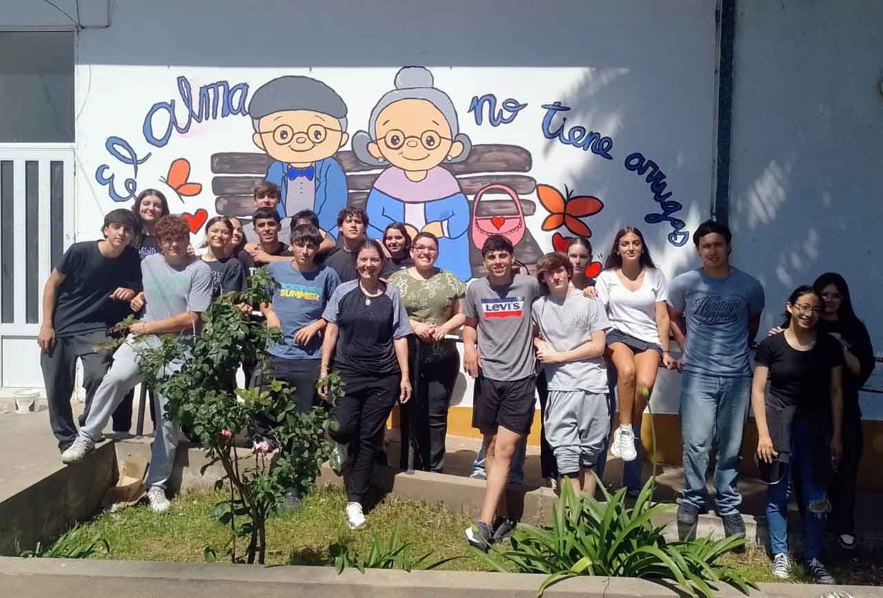 En el Hogar San José se llevó a cabo la realización de un emotivo mural en el marco del proyecto «Ancianidad, un mural de respeto y valoración hacia los adultos mayores», a cargo de la profesora María Lorena Medici, junto a sus alumnos de 5° A del Colegio Santa Cecilia.