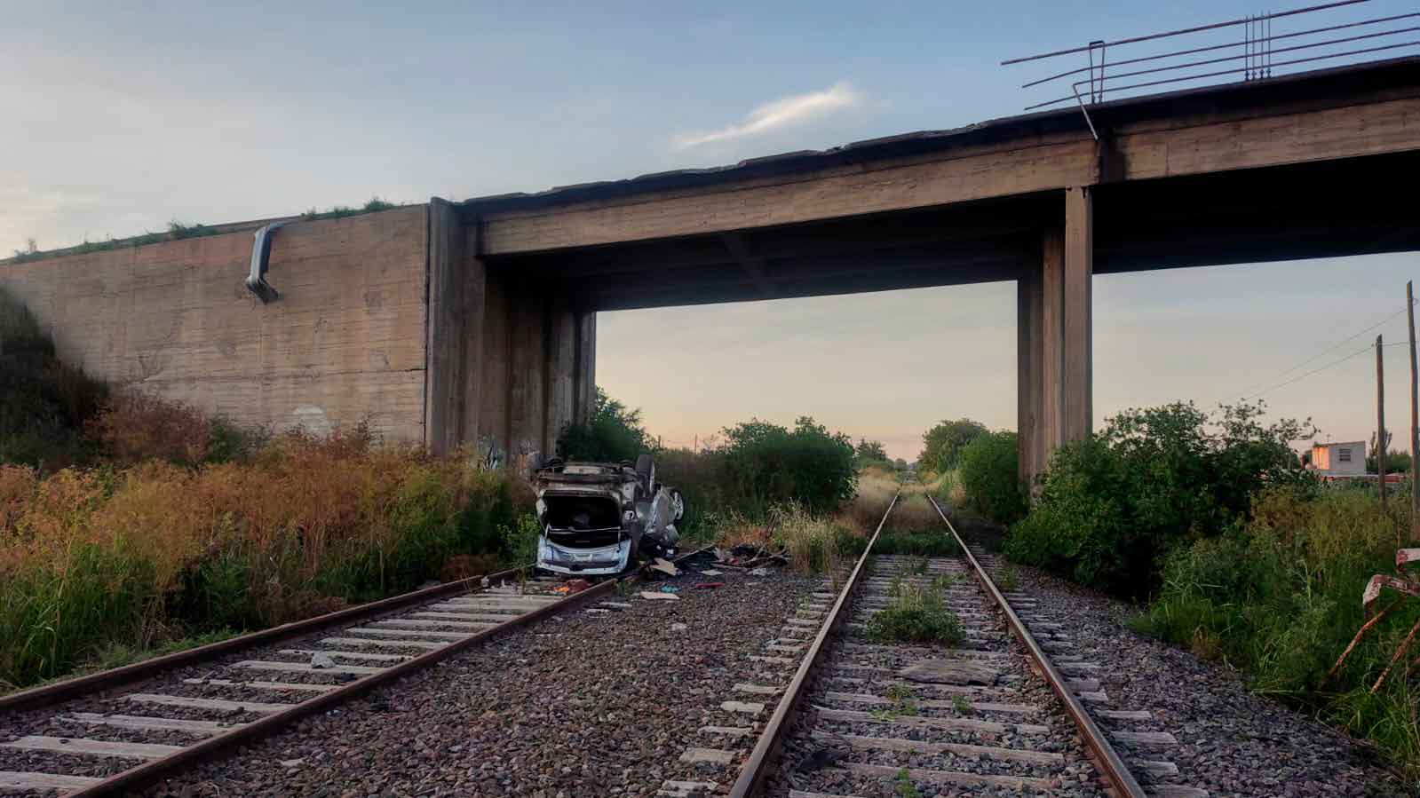 El accidente ocurrió a pocos metros del acceso al Monumento al Caballo, cuando el vehículo impactó lateralmente contra la defensa del puente y terminó cayendo varios metros hasta la zona de las vías, según informó el sitio Bragado Informa. Bomberos Voluntarios trabajaron en el lugar controlando un derrame de combustible y desconectando la batería del auto para evitar riesgos mayores.