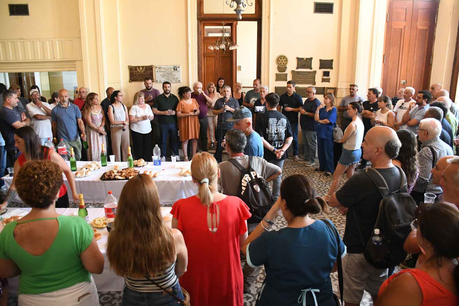 El intendente Guillermo Britos encabezó un brindis de fin de año en el Palacio Municipal, donde agradeció el compromiso y el trabajo de todos los empleados municipales a lo largo del 2025, y brindó precisiones sobre el pago de sueldos y aguinaldos.