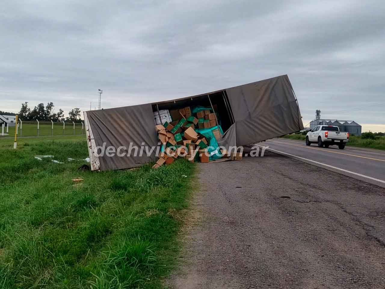 Un camión que transportaba agroquímicos y se dirigía por la Ruta Nacional 5, despistó y volcó en el préstamo de la banquina ascendente a la altura del kilómetro 161,300 en las cercanías de Chivilcoy. Pese a la magnitud del accidente, el conductor, oriundo de Venado Tuerto, solo sufrió lesiones leves y fue trasladado al Hospital Municipal para una observación.