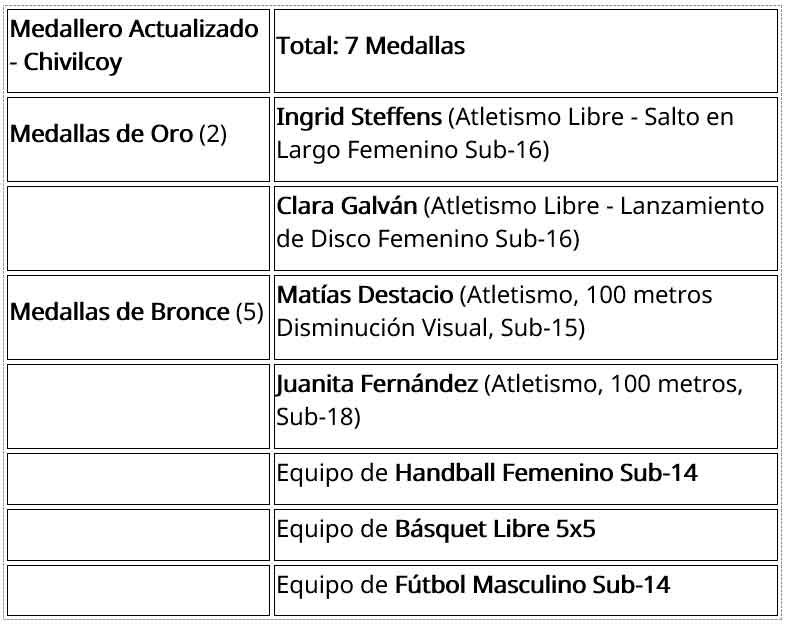 Chivilcoy sigue dejando su marca en la edición 2025 de los Juegos Bonaerenses. Con la competencia a punto de finalizar, la ciudad ha asegurado un total de siete medallas, consolidando el esfuerzo y el talento de sus jóvenes deportistas.