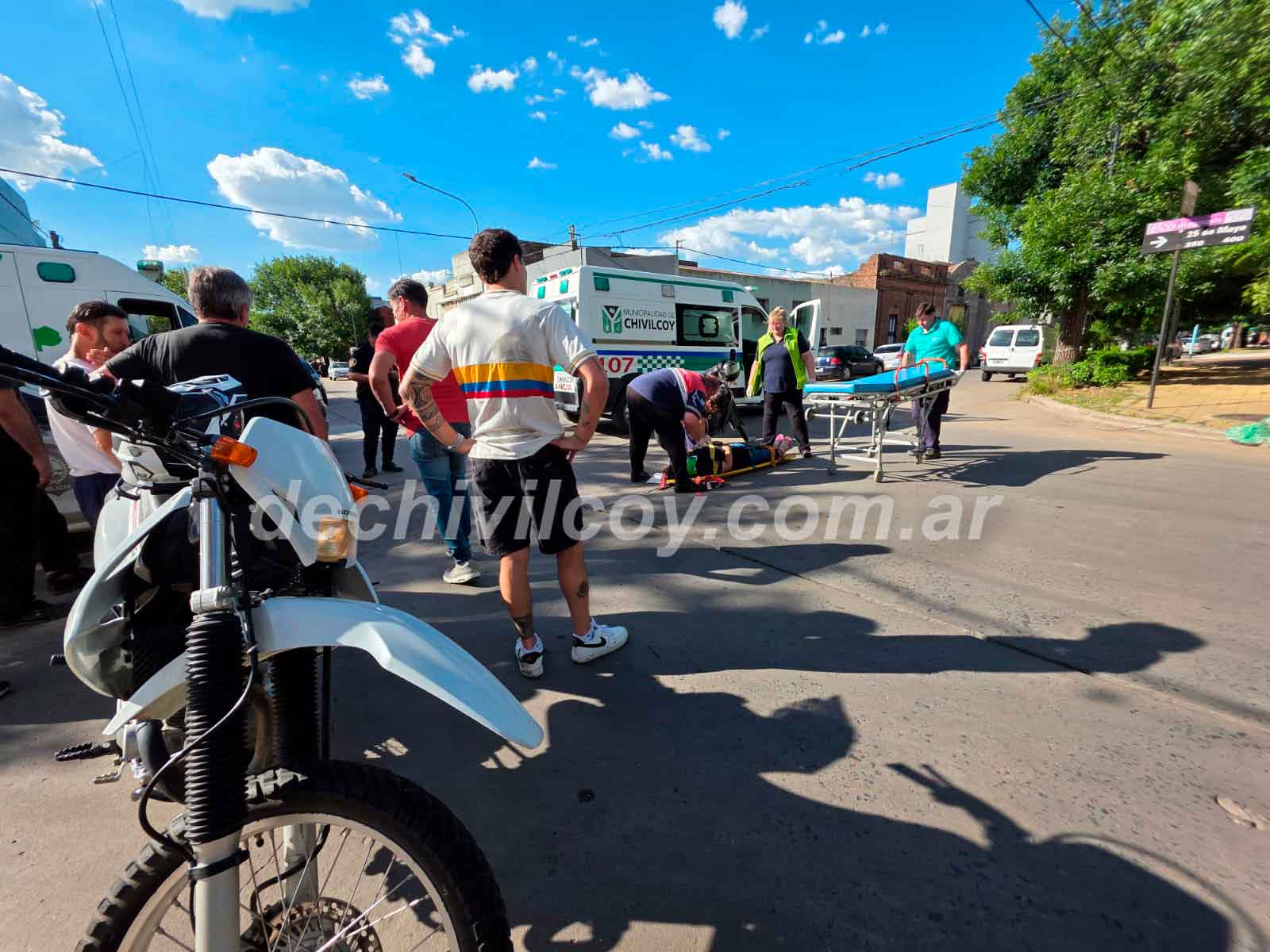 Lopardo resultó ileso mientras que a la conductora de la Zanella fue asistida y trasladada al Hospital Municipal por Marisol Miguelissi y Mariano Ledesma de SAME. Ella había manifestado que estaba operada de la columna y sentía mucho dolor. También concurrió otro móvil de SAME.