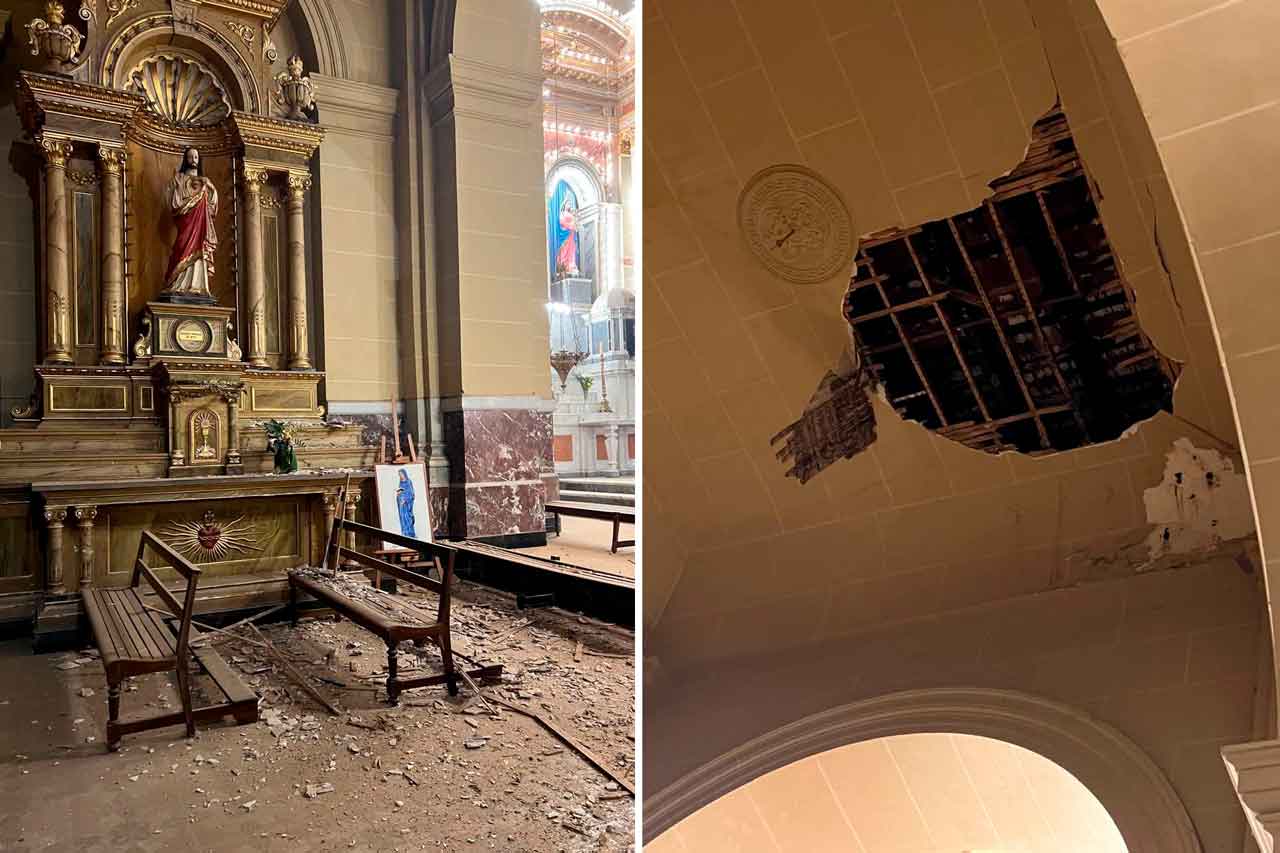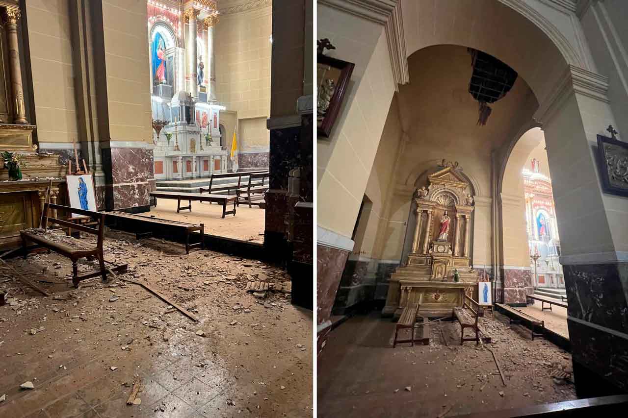 En la tardecita del jueves, en plena celebración de la misa en el templo Nuestra Señora del Rosario, perteneciente a la parroquia San Pedro Apóstol, se produjo un derrumbe parcial del techo, aparentemente provocado por las consecuencias de la intensa tormenta que afectó a la ciudad.