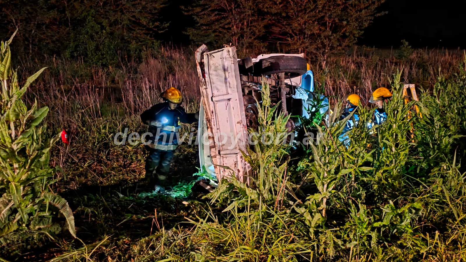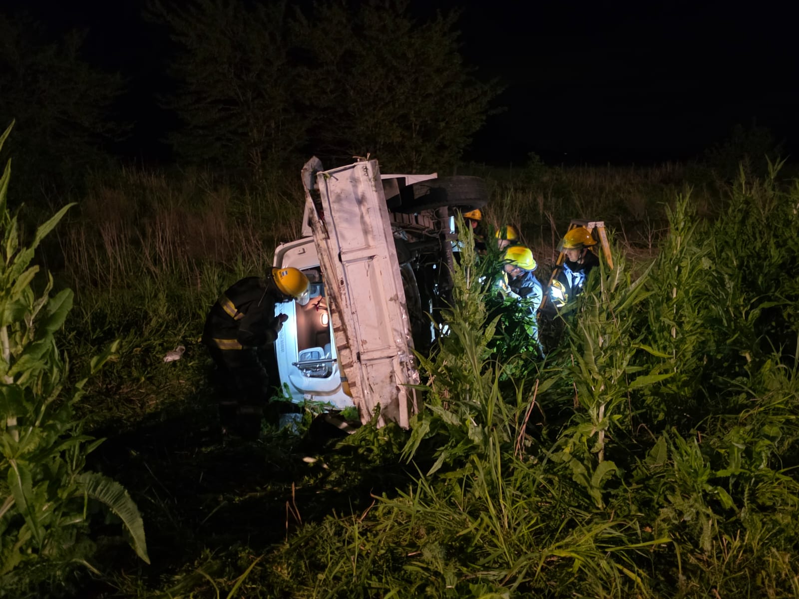 “Cuando llegamos, nos encontramos con un vehículo utilitario que había despistado y volcado. Una persona se encontraba fuera del vehículo, tendida sobre la banquina, y otra permanecía en el interior atrapada”, explicó Díaz.