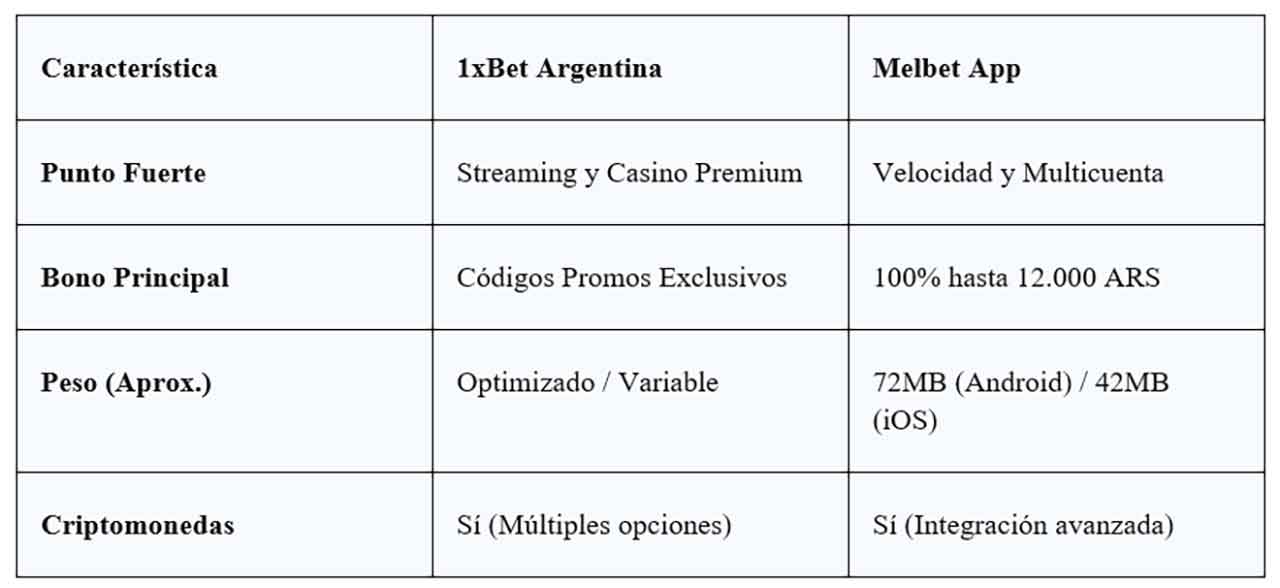Elegir entre 1xBet y Melbet depende de tus prioridades. Si buscás una experiencia visual inmersiva y transmisiones en vivo, 1xBet Argentina es tu opción. Si valorás la ligereza, la velocidad extrema y un gran bono de bienvenida en pesos, Melbet es para vos.