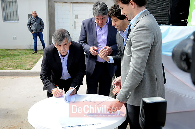 El convenio firmado por las autoridades presentes es para la construcción de un nuevo barrio con sesenta viviendas, obra a comenzar durante el mes de noviembre, un destacamento policial y un Jardín de Infantes (acordado entre la constructora ADECO y el Intendente