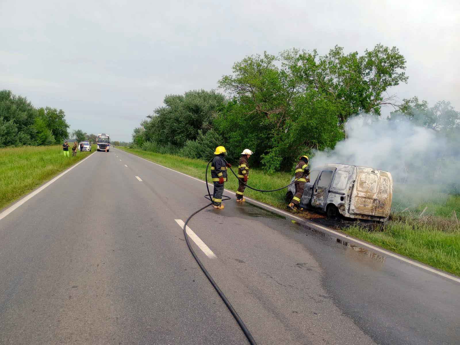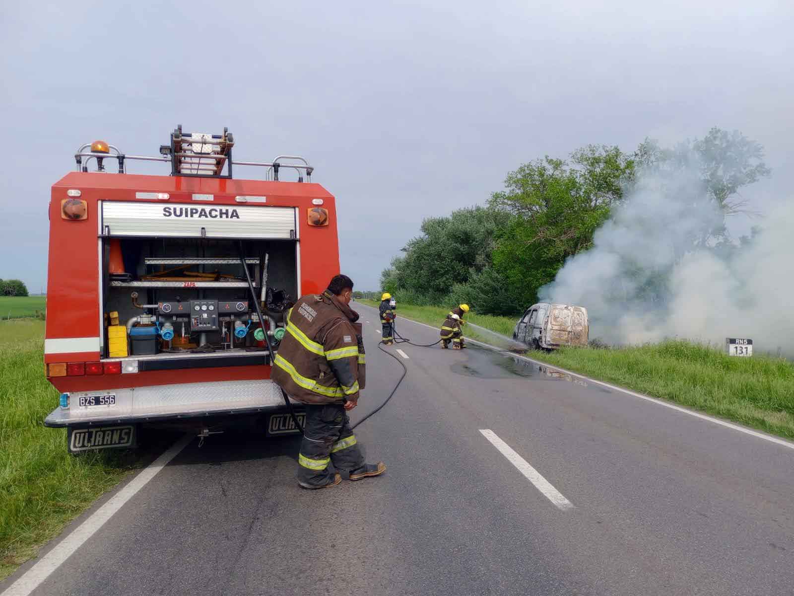 A las 9:17 horas de la mañana de hoy se produjo el incendio de un utilitario que circulaba por la Ruta 5, en jurisdicción del partido de Suipacha.