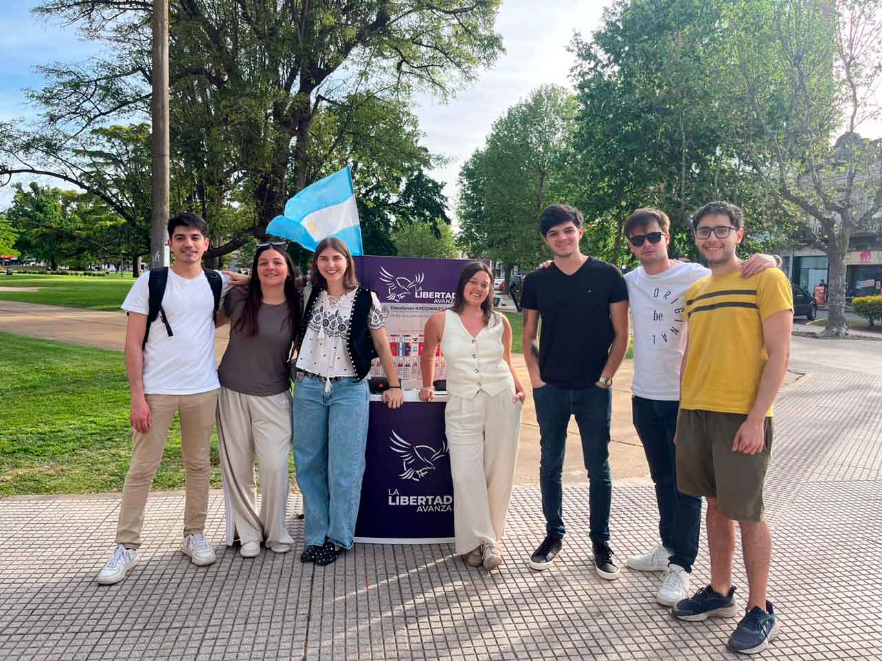 En el stand se encuentran presentes el coordinador de la Cuarta Sección, Leandro Cabrera, el coordinador de La Libertad Avanza en Chivilcoy, Federico Femminella, y los concejales recientemente electos, Juan Ignacio Felice y Noelia Ramos Nicieza, acompañados por los jóvenes y el resto de los militantes y referentes locales.