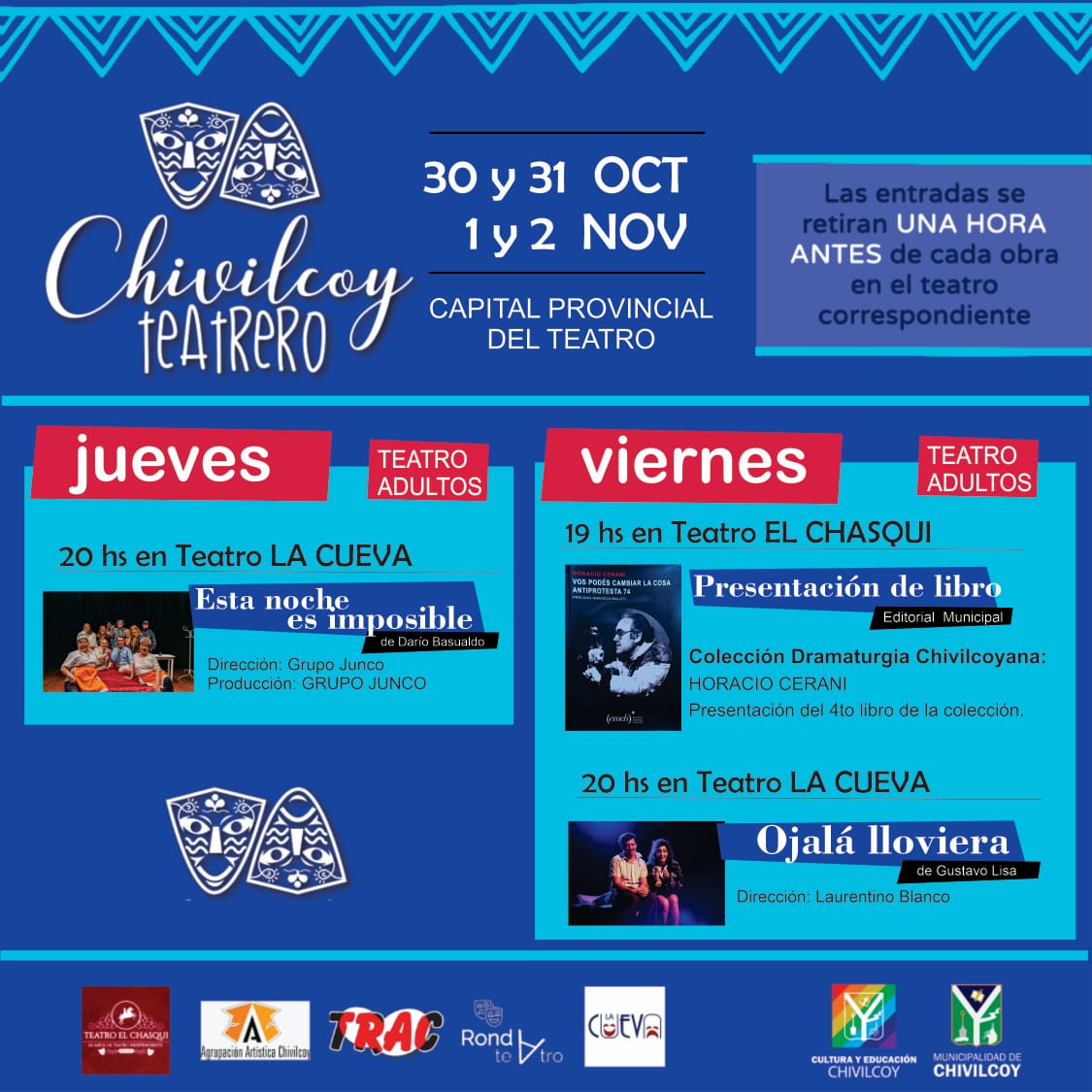 Se desarrollará a partir del jueves 30 de octubre, hasta el domingo 1 de noviembre inclusive. Se llevará a cabo en todos los teatros de la ciudad, con entradas gratuitas, las cuales se retiran una hora antes en el teatro correspondiente.