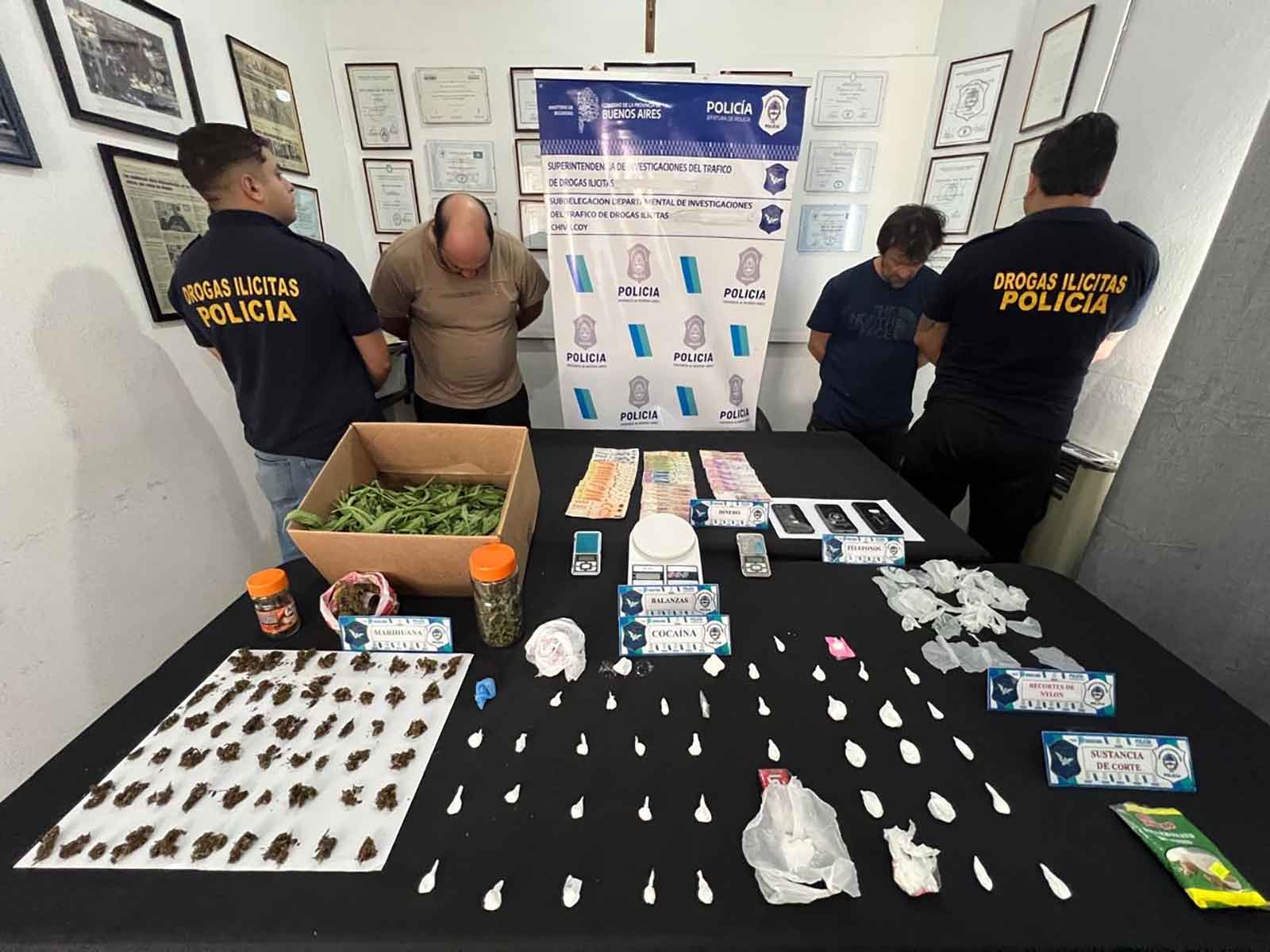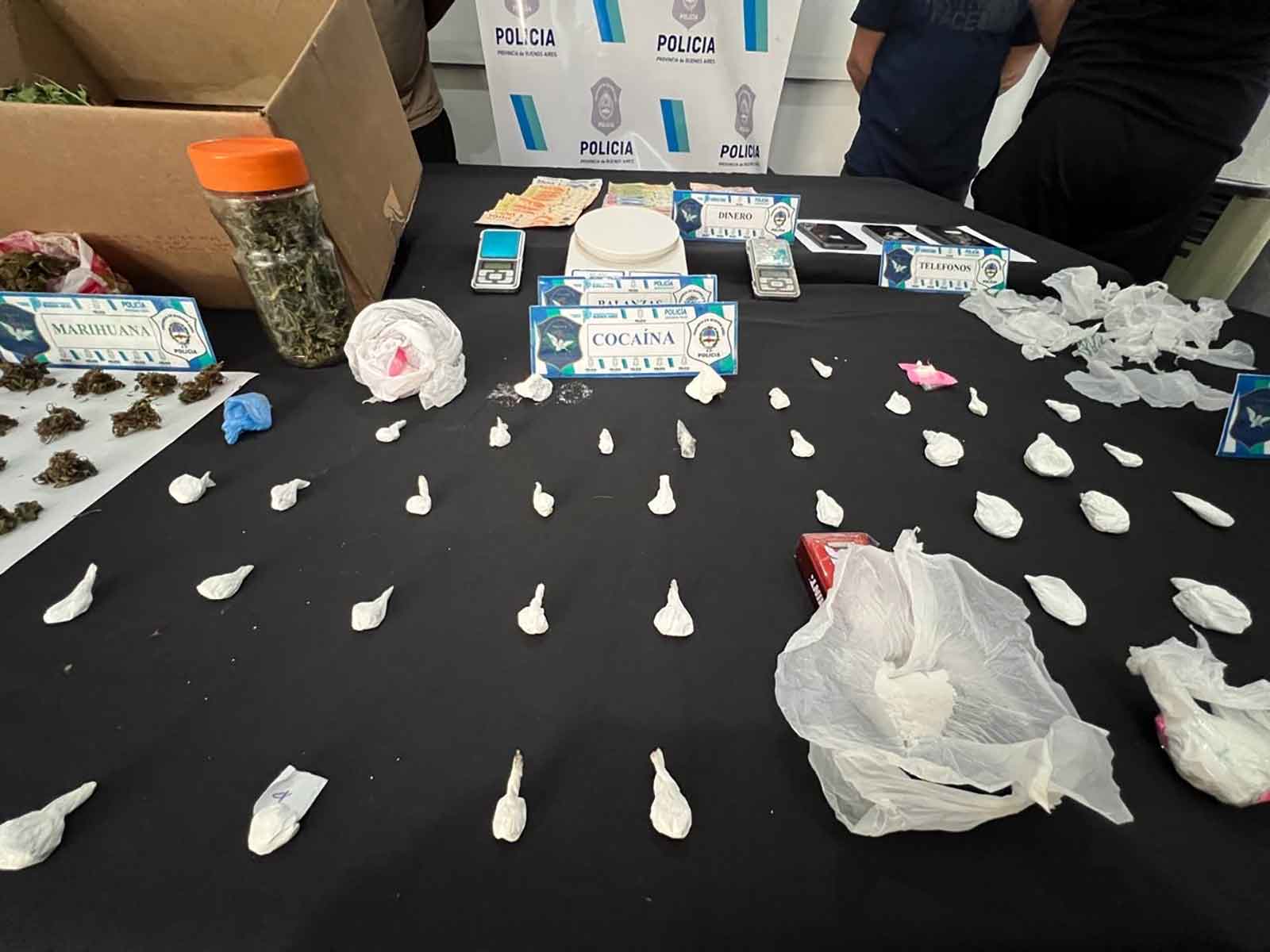 El segundo allanamiento tuvo lugar sobre calle Rodríguez Peña y Tucumán, vivienda en la cual reside el masculino Marcelo Antonio Tripulillo, alias “El Tripa”, lográndose secuestrar 18 envoltorios con clorhidrato de cocaína, dos frascos conteniendo en su interior cogollos de marihuana más un envoltorio con la misma sustancia estupefaciente, elementos de corte y varios recortes de nylon.