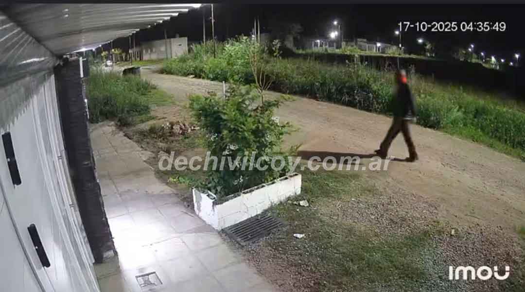 Las cámaras de seguridad registraron el momento en que el delincuente ingresó por el portón de la vivienda y, en pocos minutos, sustrajo la moto y se dio a la fuga.