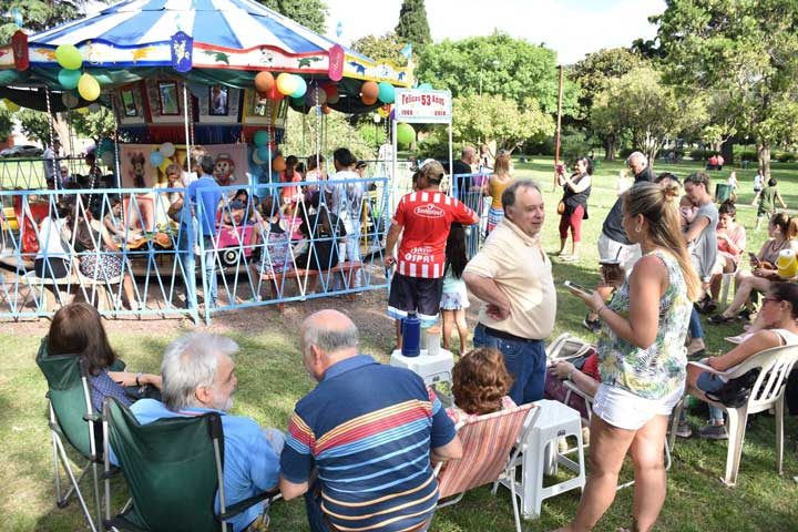Para celebrar el cumpleaños, se compartió una tarde con inflables, tejo y vueltas a la calesita gratuitas para los niños, donde el jefe comunal hizo entrega del decreto a la familia propietaria.