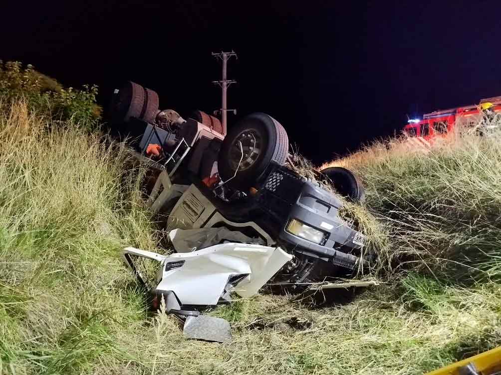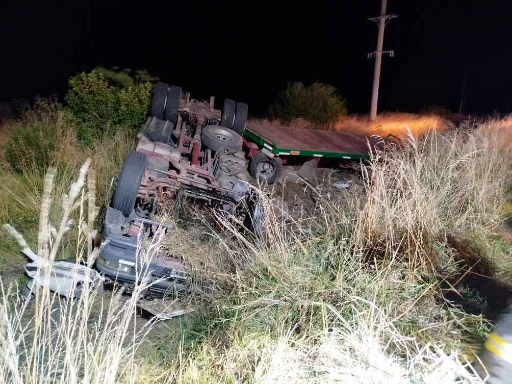 Alrededor de las 21:55 horas, de ayer martes 6 de enero, se toma conocimiento del vuelco de un camión en el acceso a la localidad de General Rivas, partido de Suipacha.