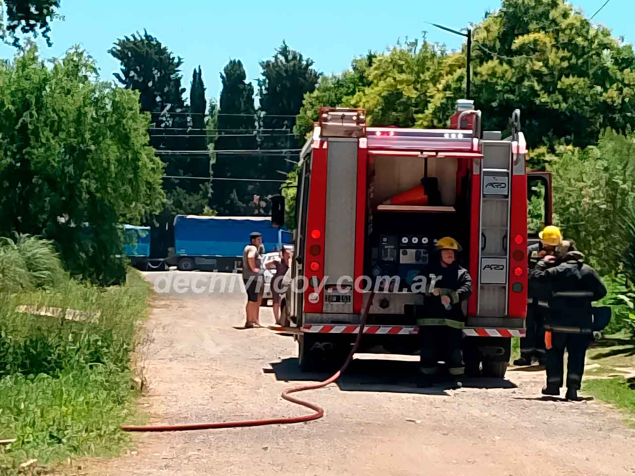 En simultáneo, una dotación de Bomberos Voluntarios a cargo de Héctor Alagia trabajó en el lugar y logró sofocar el incendio.