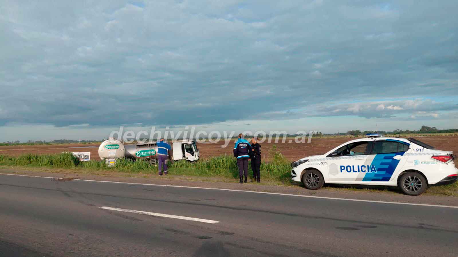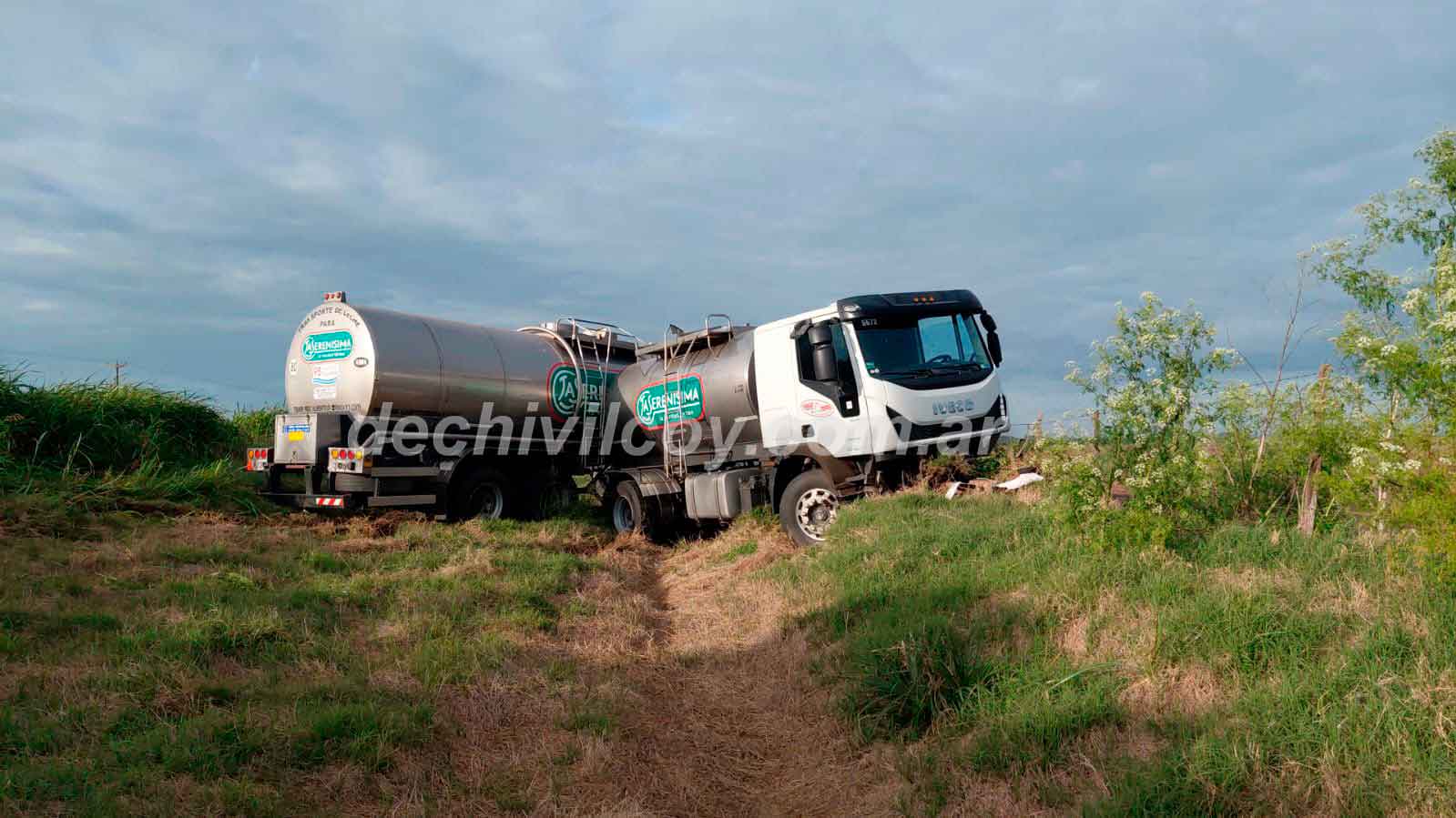Un camión perteneciente a una firma dedicada al traslado de productos lácteos protagonizó un incidente vial en las primeras horas de la mañana de hoy, al salirse del pavimento en el kilómetro 161,500 de la Ruta Nacional N° 5.
