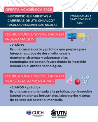 Ambas tecnicaturas son públicas y gratuitas, no tienen límite de edad y cuentan con cursada nocturna, pensada especialmente para personas que trabajan o tienen otras responsabilidades. La modalidad es presencial, con dictado de clases de lunes a viernes a partir de las 18.30 en el CUCH.